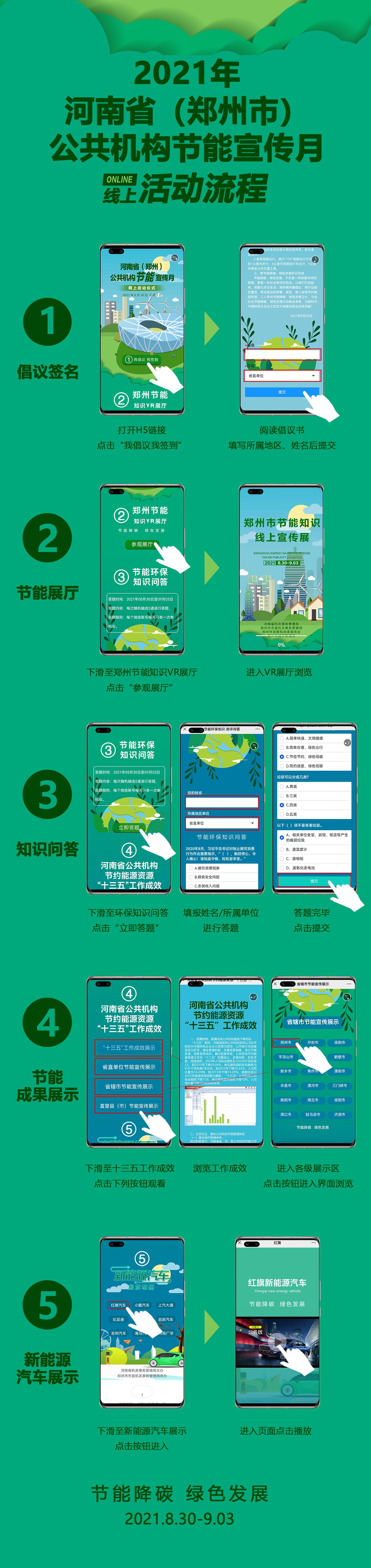 为引导公共机构践行绿色低碳生活方式,发挥公共机构示范引领作用,“河南省公共机构节能宣传月”线上系列活动已经启动,活动时间为2021.8.30至2021.9.3,扫描以下二维码即可参与,线上活动流程详见附件,欢迎bet36体育在线广大师生积极参加。