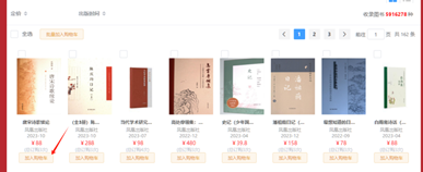 点击任意出版社或者根据分类界面点击进入书目列表页,点击您心仪的图书加入采购即可。