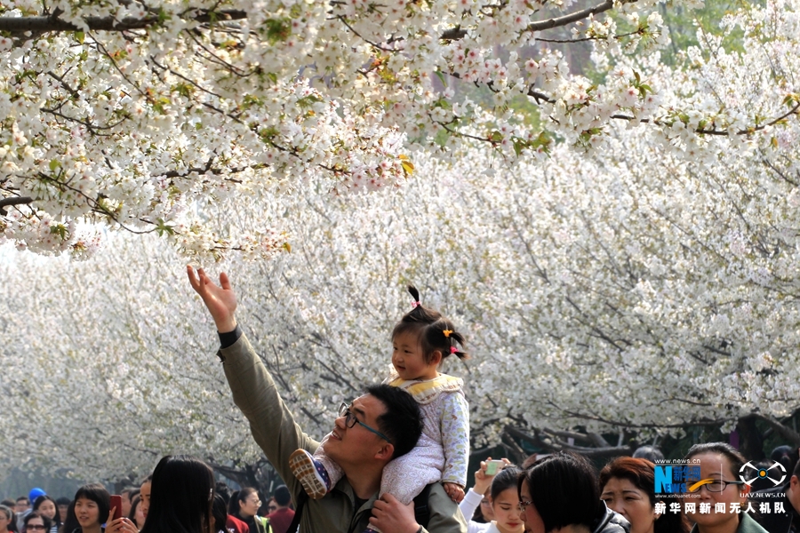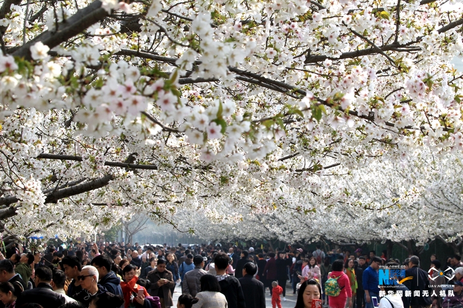 3月25日航拍的bet36体育在线樱花大道樱花绽放如雪。