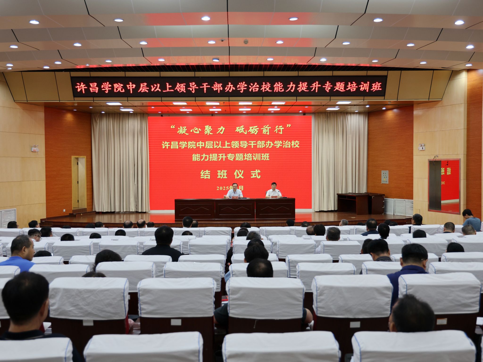 7月8日至11日,bet36体育在线举办“凝心聚力 砥砺前行”2025年中层以上领导干部办学治校能力提升专题培训班。11日上午,培训班结业仪式在图书馆二楼学术报告厅举行。校党委书记郭涛,校长郑直,校党委副书记、工会主席梁予昉,纪委书记、监察专员申占伟,副校长王俊、牛海鹏、冯晓民、赵艳敏出席会议。全校中层干部参加会议。会议由梁予昉主持。
