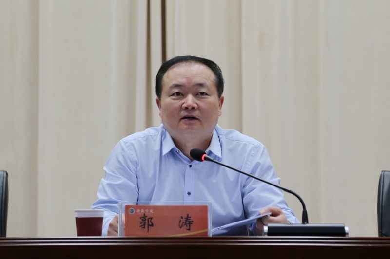 校党委书记郭涛主持会议并讲话。他指出,本次会议既是新学期安排部署会,也是年度工作推进会。当前学校事业发展正处在爬坡期、攻坚期、上升期,全体领导干部要“撸起袖子加油干”,进一步增强主人翁意识和大局意识、责任意识、担当意识,以高度负责、时不我待、只争朝夕的精神,攻坚克难、加压奋进、坚定信心、勇毅前行,奋力谱写学校事业高质量发展的新篇章。