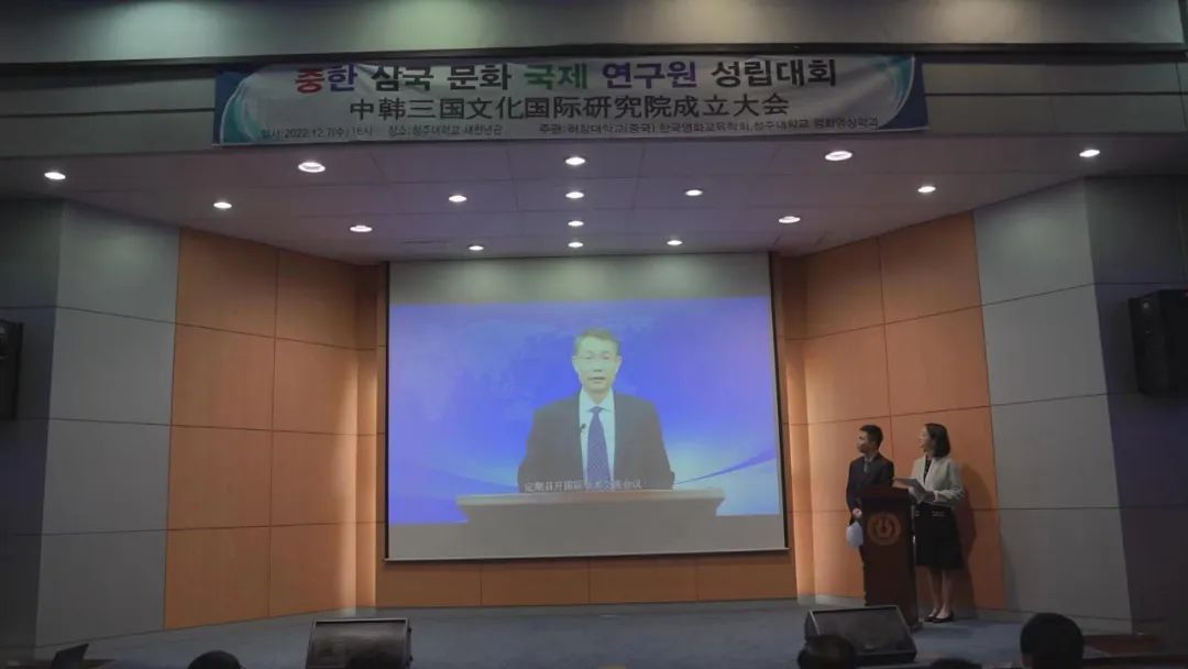 12月7日,由bet36体育在线与韩国清州大学共同发起,许昌市人民政府和国内多所高校共同参与的中韩三国文化国际研究院在韩国清州大学正式成立。中韩两国高校30多位教授和博士参加了成立大会。bet36体育在线院长郑直教授发表视频致辞,bet36体育在线教师黄杰博士当选研究院院长。