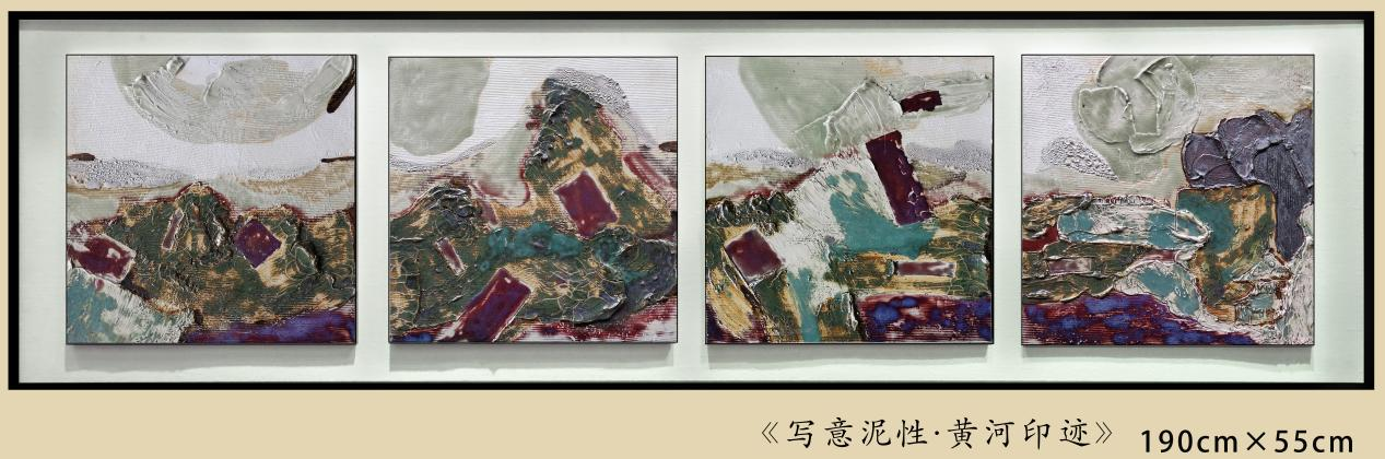 在这样理念的驱动下,郭君健大胆尝试用钧釉瓷板画的形式,创作出了作品《写意泥性·黄河印记》。“水墨可以在宣纸上泼墨写意,泥也可以在瓷板上泼墨写意。”郭君健说,“钧釉瓷板画为钧釉材料艺术语言注入了新的可能性,我想在传统工艺的精工细作和当代艺术的朴拙意境之间找到一个平衡。”