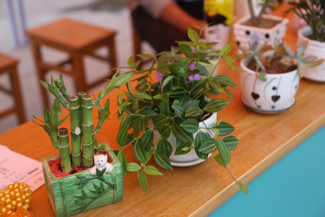 此外,设计艺术学院还在学校收集了1097个废弃塑料瓶并栽上绿色植物摆成“绿色教育专业协作会二维码”的造型。近期,他们还将专门收集部分塑料瓶、废纸等进行回收、制作成“懒人花瓶”,并进行绿色爱心义卖。