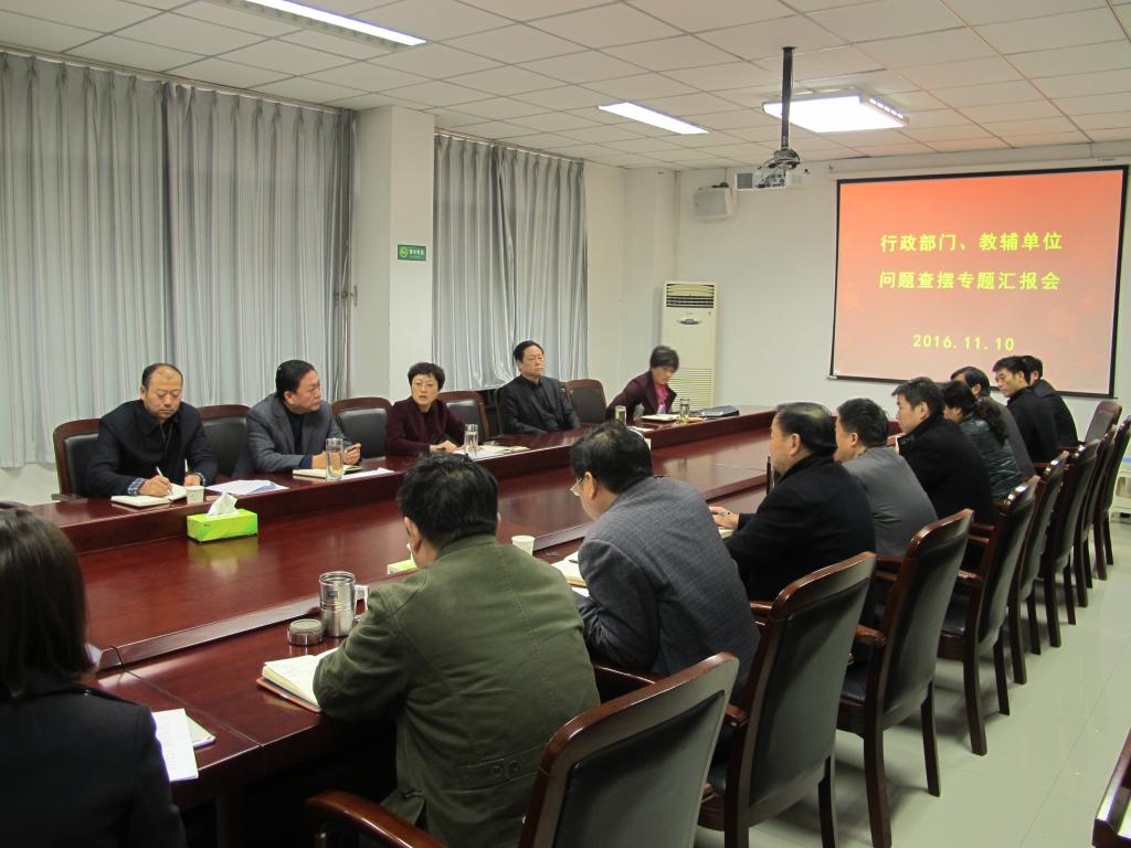 为进一步深挖问题,切实制定好整改措施,确保巡视整改工作取得实效,11月10日,学校组织召开了行政机关和教辅单位问题查摆专题汇报会,院长赵继红,党委副书记马超,副院长赵正风、郑直、崔斌、黄怡俐,纪委书记罗凤英出席会议。行政机关部门及教辅单位主要负责人参加会议。