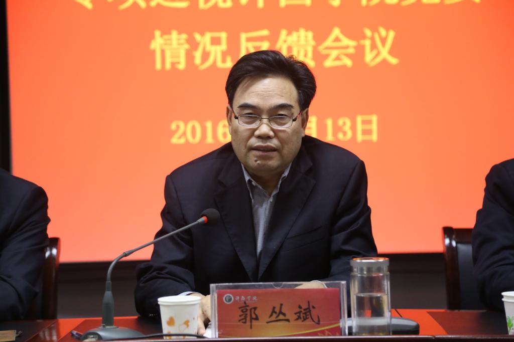 郭丛斌提出了四点意见建议。一要切实加强党的建设。领导班子要加强自身建设,真正成为政治坚强、作风优良、善于统筹、精于管理、关爱师生、严于律己的高素质领导班子。要切实加强思想政治建设,牢牢把握意识形态的领导权、主动权,把思想政治工作融入到各个环节、各个角落中。要积极探索适应大学生特点的思想政治教育方式,真正培养出党和国家需要的合格人才。要切实加强学校基层党组织建设。把各总支、党支部建成坚强的战斗堡垒,要结合“两学一做”教育,把党员真正建设成先锋队,使之发挥出推动学校健康发展的先锋作用。二要切实履行好“两个责任”。学校党委要真正把党风廉政建设的主体责任扛起来,细化责任清单,强化责任约束,层层传导压力,压实主体责任,主要领导要认真履行第一责任人的政治责任,抓好班子,带好队伍。领导班子成员要落实好“一岗双责”,加强对分管单位和二级院部党风廉政建设的领导,形成一级抓一级,层层抓落实的工作局面,要支持学校纪委工作,对违纪人员的处理要敢于硬起手腕,努力形成学校反腐倡廉的高压态势。学校纪委要加大查处力度,对发现的违规违纪问题和巡视组移交的问题线索,要认真办理,切实做到件件有着落,事事有回音,努力形成查办案件的震慑作用。三要集中开展对违规违纪情况的专项治理。要以“两学一做”学习教育为契机,教育引导广大党员干部牢固树立党章、党规、党纪意识,真正把纪律、规矩意识立起来、严起来,确保中央和省委部署的重大教育活动不走过场,取得实效。要集中开展违反中央八项规定精神问题的专项治理,进一步严格组织人事工作纪律,真正树立正确的用人导向。四是要加大改革力度,堵塞管理漏洞,消除廉洁风险,校党委要针对重要岗位和关键环节,紧盯重点人、重点事和重点问题,进一步健全各项制度,加强监督检查,从源头上消除廉洁风险。