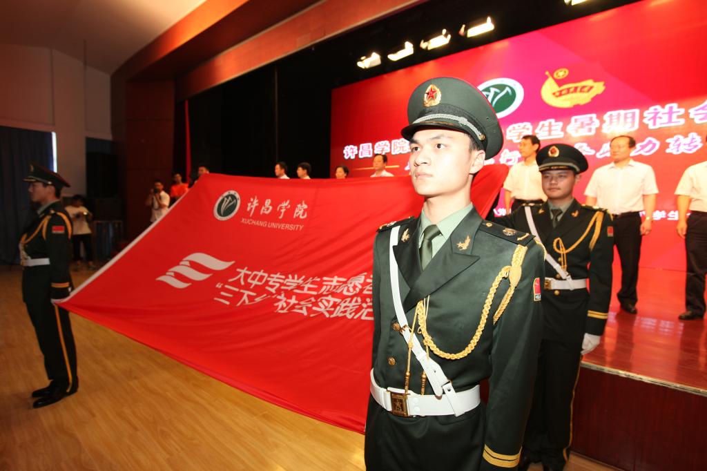 仪式上,校党委副书记马超讲话。他说,学校始终坚持把社会实践作为大学生思想政治教育工作的重要环节,充分发挥学科专业优势,组织开展了大量主题鲜明、内容丰富、形式多样的社会实践活动,多次受到河南省委宣传部、团省委、教育厅等上级部门的表彰,为学校赢得了荣誉。