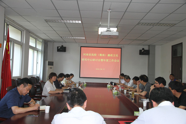 6月17日下午,河南省高校(豫南)廉政文化研究中心研讨会暨年度工作会议在bet36体育在线办公楼第四会议室召开。校纪委书记、廉政文化研究中心主任罗凤英出席会议,研究中心研究员、特邀教师等30余人参会。会议由法政学院院长、研究中心副主任崔秀花主持。