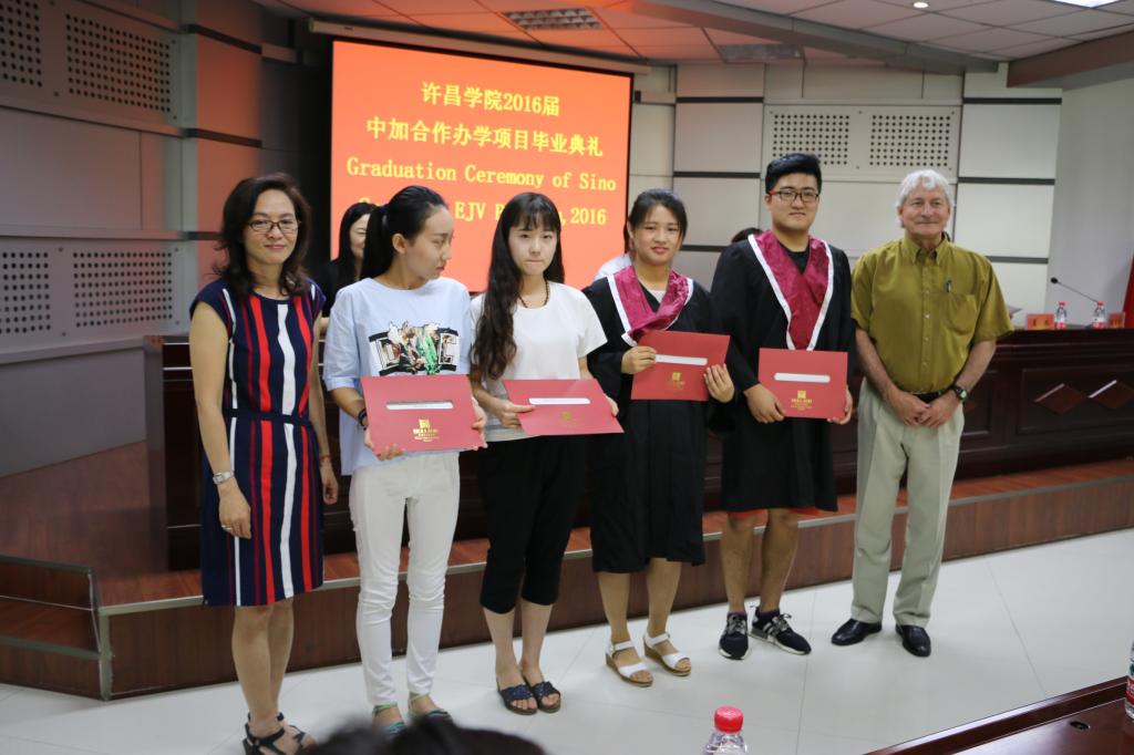 74名2016届中加合作办学项目毕业生被授予毕业证书。于露露、郭慧凯、邹嘉琳、李韵四人获得荷兰学院2016年度奖学金。荷兰学院校长代表大卫·比顿教授为毕业生颁发年度奖学金与毕业证书。