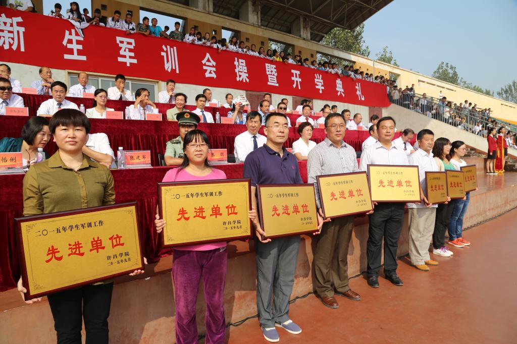 仪式上,副院长郭涛宣布了学校《关于表彰2015级新生军训工作先进集体和先进个人的决定》和《关于对2015级新生奖学金获得者进行表彰的决定》。文学与传媒学院 、美术学院 、城乡规划与园林学院 、医学院 、国际教育学院、电气工程学院(机电工程学院)、经济学院(管理学院)、食品与生物工程学院等8个军训先进集体和2015级学生董冰洁等108名军训先进个人受到表彰,高艳萍等40名同学获得2015级新生奖学金。出席军训仪式的校领导为获奖单位和个人颁奖。