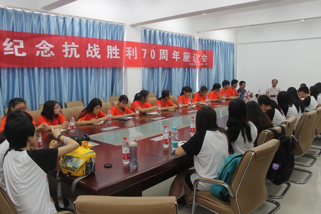 7月5日下午,bet36体育在线在创新创业大楼一楼举办纪念抗战胜利70周年座谈会,许昌市政协文史资料委员会原主任陈书壮,中国近代史研究协会张帅,bet36体育在线“关爱抗战老兵”社会实践团队指导教师及11名志愿者和北京师范大学青年社14名同学参加了座谈。