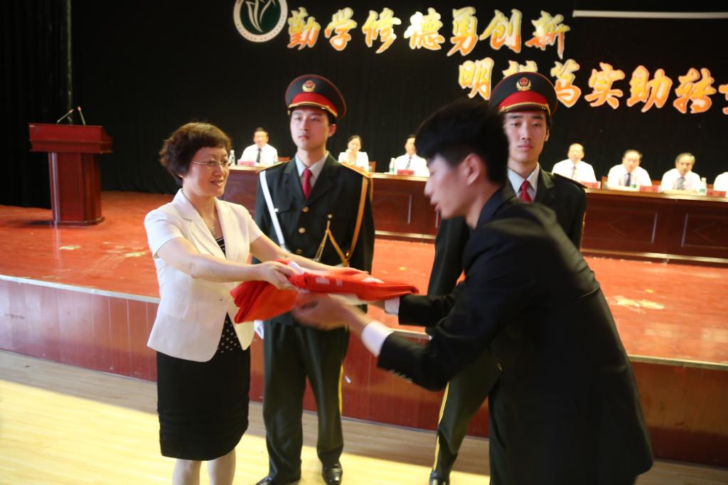 院长赵继红向校社会实践队学生代表授社会实践队旗