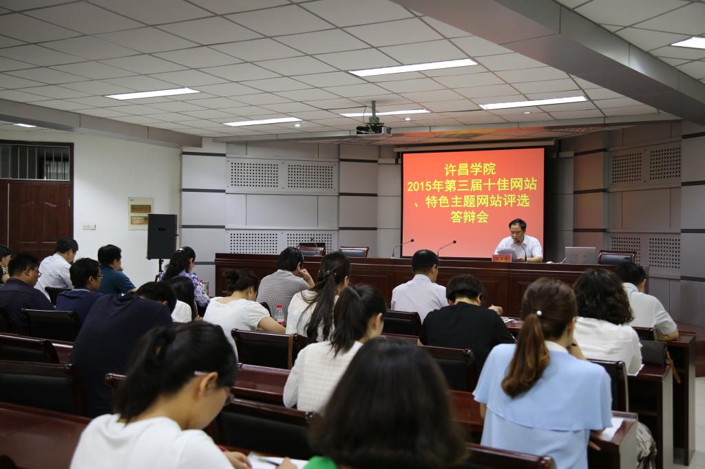 6月23日下午,bet36体育在线第三届十佳网站、特色主题网站评选答辩会在办公楼第三会议室举行。党委办公室、党委宣传部、院长办公室、教务处、招生就业处、学科办公室、团委等单位负责人担当评委。参加答辩的16个候选网站负责人及部分单位宣传信息员参加了答辩会。