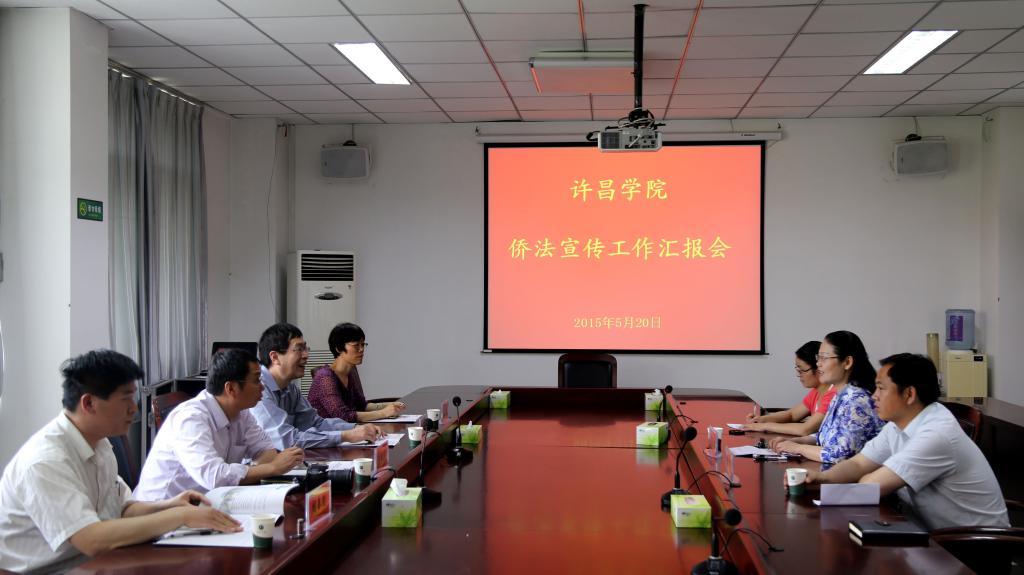 5月20日上午,由河南省人民政府外事侨务办公室国内侨务处处长史永庆、副处长庞振东,许昌市人民政府外事侨务办公室副主任王惠明、侨务科科长胡春明组成的检查组到bet36体育在线检查指导全国“侨法宣传角”建设工作。bet36体育在线在办公楼第一会议室召开工作汇报会,校党委统战部部长潘春彩、副部长崔越参加会议。