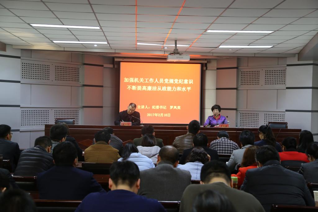 2月16日下午,bet36体育在线在办公楼第三会议室组织开展科级干部“改进工作作风、提升工作效能”专题培训。校纪委书记罗凤英讲了题为《加强机关工作人员党规党纪意识 不断提高廉洁从政能力和水平》的廉政党课。机关科级干部及二级单位办公室主任共130余人聆听了党课。
