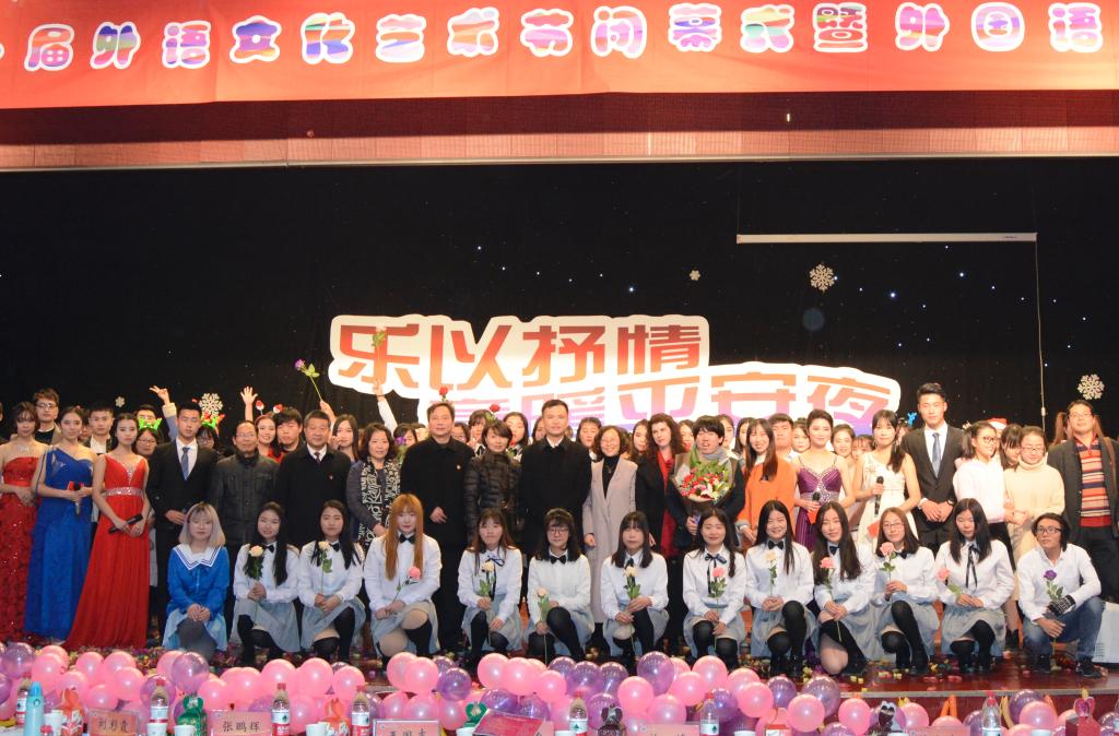 12月24日晚,bet36体育在线第十一届外语文化节在大学生活动中心闭幕。bet36体育在线学生工作处、团委、外国语学院等单位负责人及外国语学院师生600余人参加了活动。