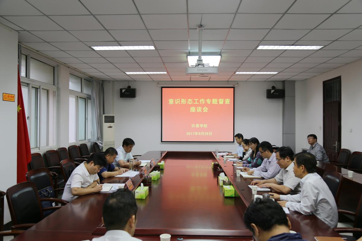 9月26日下午,按照省委统一部署和安排,以河南中医药大学原党委书记孙建中为组长,省教育厅思政处副处长徐军保、省直工委宣传部主任科员甄要辉等为成员的意识形态工作专题督查组一行三人,莅临bet36体育在线检查指导意识形态工作。bet36体育在线在办公楼第四会议室举行了意识形态工作汇报会。党委书记闫纪建、党委副书记马超、副院长郭涛出席会议,相关部门负责人和部分二级学院党总支书记参加了会议。会议由党委副书记马超主持。