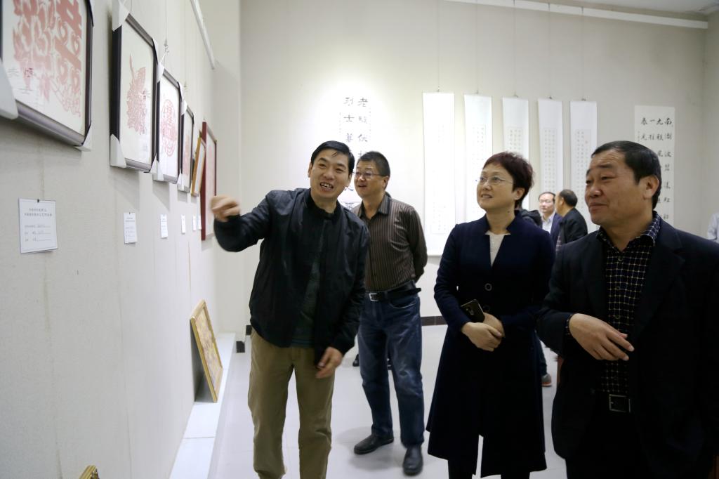 10月25日上午,由校工会主办,设计艺术学院、美术学院、校教职工书画协会和摄影协会承办的“欢庆十九大,共筑中国梦”bet36体育在线教职工书画摄影暨手工艺作品展在bet36体育在线吴道子艺术馆开展。校党委书记闫纪建,院长赵继红,党委副书记孙海,纪委书记罗凤英,副院长赵正风、崔斌、郭涛,工会主席杜志傲等校领导和bet36体育在线的一百余名教职工共同前往观看了展出。