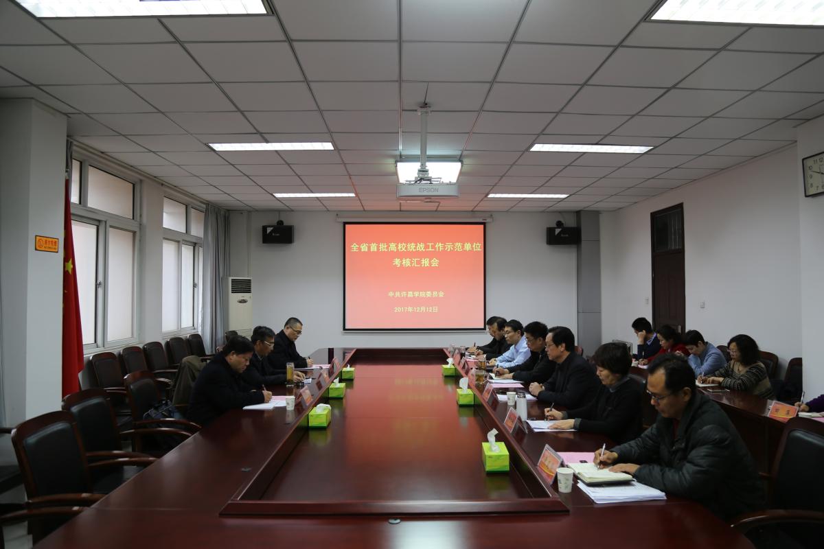 汇报会上,考核组组长梁晓夏书记首先就本次全省开展统战工作考核的背景、意义、程序和要求做了说明。bet36体育在线党委书记闫纪建简要介绍了学校的基本情况,然后以“务实重做 开拓创新 大力推进统一战线工作”为题,进行专题汇报。汇报中,闫书记指出,bet36体育在线高度重视统战工作,认真学习贯彻党的十九大精神和中央、省委关于统一战线的一系列重大决策部署,务实重做,开拓创新,不断提升统战工作专业化、科学化水平,从而为学校转型发展、建设特色鲜明的高水平应用技术大学营造了良好的发展环境。一是高度重视,形成合力,着力构建大统战工作格局;二是健全机构,完善机制,确保统战工作保障有力;三是围绕大局,凝心聚力,充分发挥民主党派和无党派人士的作用;四是规范管理,注重创新,凝练打造统战工作特色;五是落实部署,扩大影响,积极承办全省和许昌市统战工作重大活动;六是一年来统战工作硕果累累,成效显著。闫书记希望以此次检查考核为契机,进一步推动bet36体育在线统战工作科学发展,不断谱写学校统一战线事业新篇章。