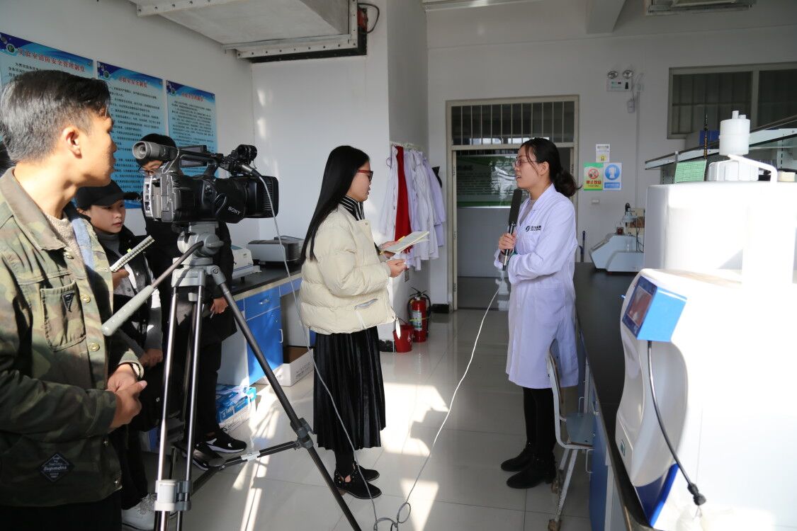 校媒记者在工程技术中心进行采访
