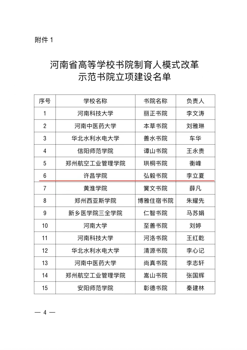 近日,河南省教育厅下发《关于公布河南省高等学校书院制育人模式改革示范书院立项建设名单的通知》(教高[2022]401号),经学校申报、资格审查、会议评审、网上答辩等环节,bet36体育在线弘毅书院成功获批首批河南省高等学校书院制育人模式改革示范书院。