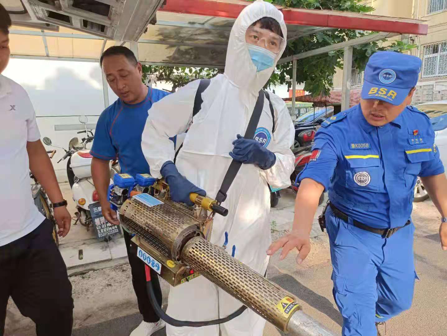 图为李浩杰同学(右二)在许昌协助消杀工作