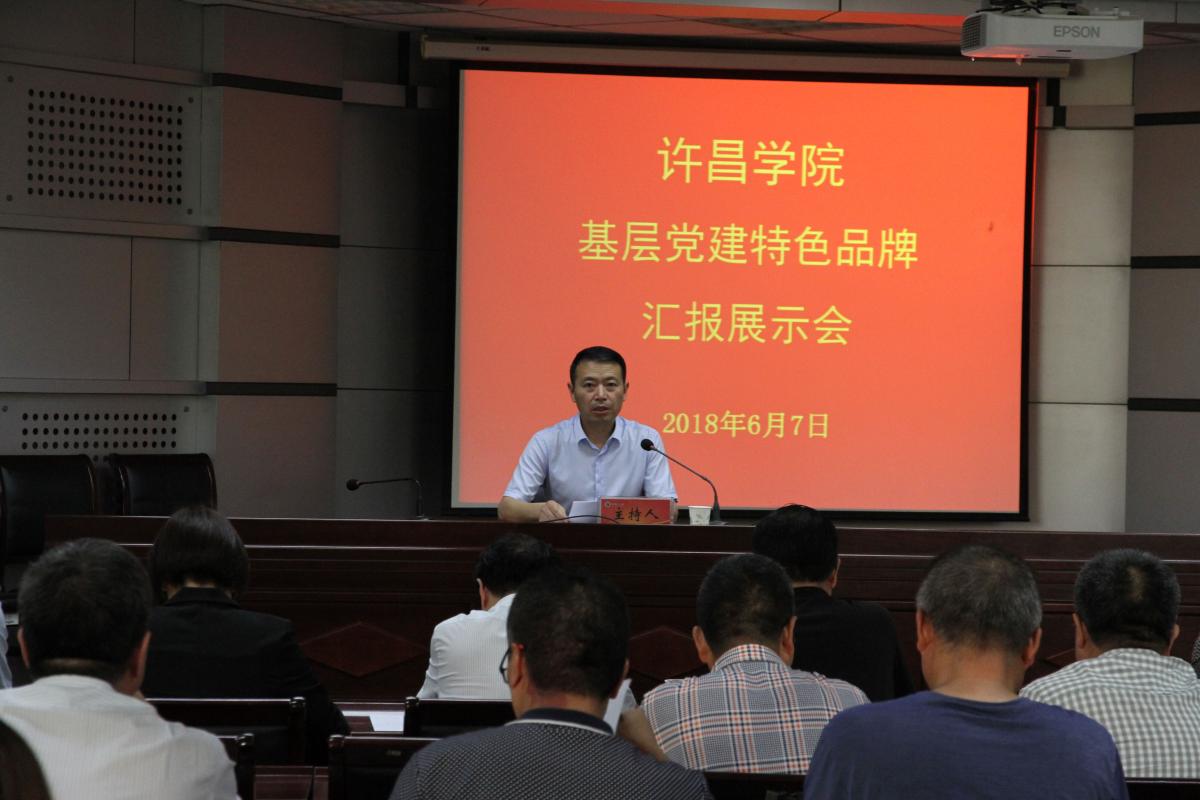 6月7日下午,bet36体育在线在办公楼第三会议室召开基层党建特色品牌汇报展示会。校党委副书记孙海出席会议。党政办公室、党委组织部、宣传部、统战部、纪委等职能部门领导和获得学校首批基层党建特色品牌的二级学院党总支书记代表应邀担任评委。全校各二级基层党组织书记、副书记和支部书记代表参加了汇报展示会。汇报展示会由党委组织部部长陈遂德主持。