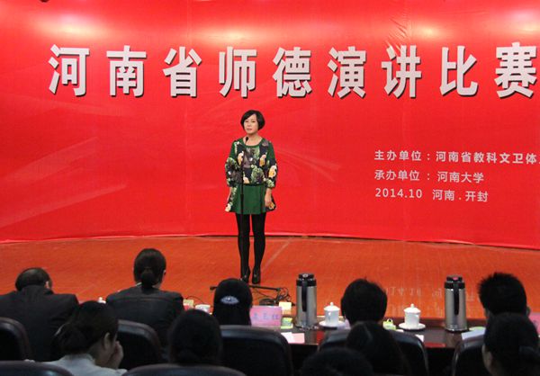 为进一步加强教师职业道德建设,充分展示广大教师爱岗敬业、无私奉献的精神面貌,引导广大教职工积极为我省教育事业建功立业,河南省教科文卫体工会举办全省青年教师师德演讲比赛。校工会在接到比赛通知后高度重视,从比赛人选的确定,到演讲内容的审核、上报等,每一个环节都精心组织安排;申璐莹老师在接到参赛任务后,在繁忙的工作之余不辞辛劳,认真准备演讲内容,几易其稿,并根据演讲内容准备了配乐、影像等多媒体手段。功夫不负有心人,经过艰苦努力,最终在本次比赛中获得好成绩。