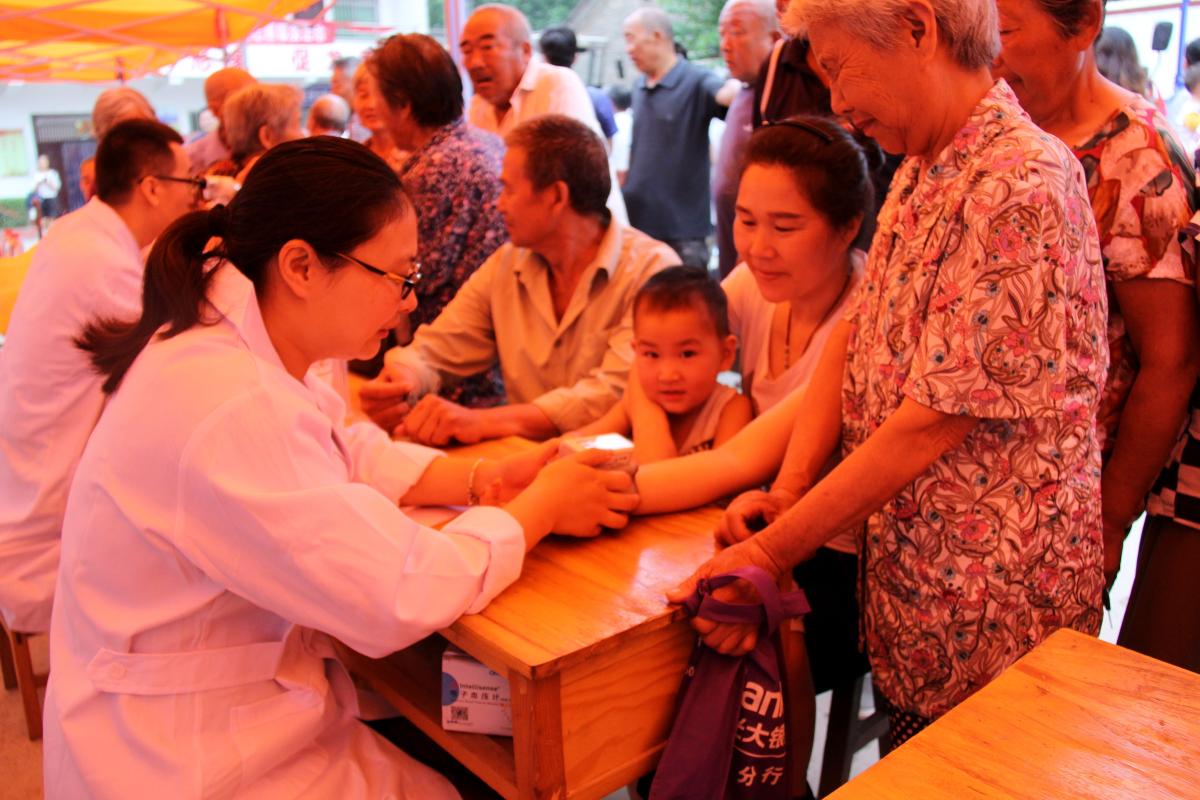 在村委会大院,来自bet36体育在线医学院和校医院的教职工志愿者设置了内科、眼科、儿科、口腔科、妇科、护理、中医、保健与健康指导八个咨询台,现场免费为村民测量血压、血糖、提供心电图检查、发放了常用药品,耐心解答村民的咨询,细心诊断各类常见、多发疾病,指导群众规范用药,同时给予科学的治疗和保健建议,使每一位前来就诊咨询的村民享受到“家门口”的优质医疗服务。
