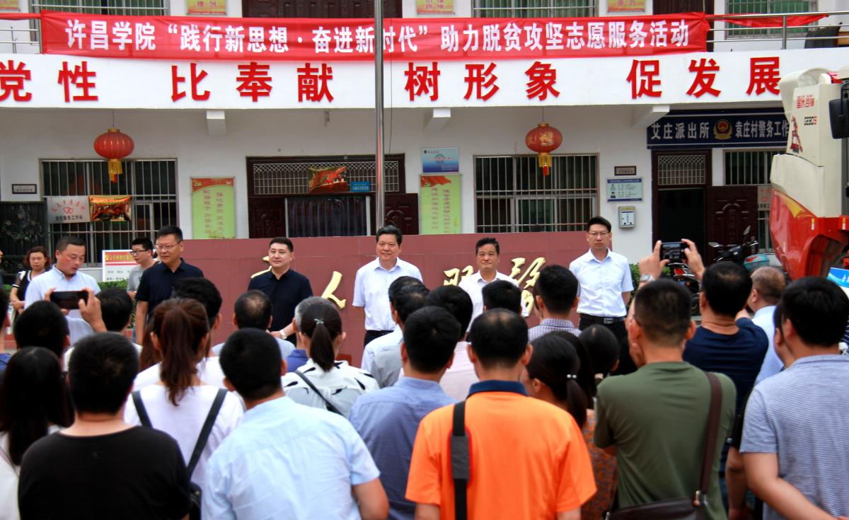 6月26日上午,由校工会组织的“践行新思想·奋进新时代”——助力袁庄村脱贫攻坚教职工志愿服务活动启动仪式在bet36体育在线对口帮扶村建安区艾庄回族乡袁庄村举行。校工会主席高金星,党委组织部长陈遂德、建安区武装部政委李发扬、群工部部长李书正、艾庄回族乡党委书记刘迎君、乡长刘文奇等出席启动仪式,建安区区乡帮扶负责人、袁庄村两委班子成员和bet36体育在线承担志愿服务项目的相关分工会负责人、志愿者代表100余人参加启动仪式。仪式由bet36体育在线驻袁庄村第一书记陈浩勇主持。