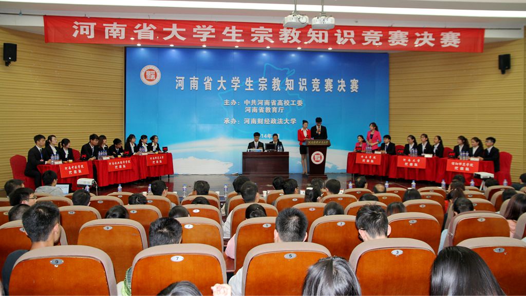 为普及宗教知识,宣传国家有关法律法规,促进大学生树立马克思主义宗教观和学法遵法守法用法意识,提高学生正确认识和对待宗教问题的能力,去年,我省启动大学生宗教知识竞赛,竞赛分为全省各高校校内选拔赛、片区复赛、决赛三个阶段。决赛由中共河南省委高校工委、河南省教育厅主办,河南财经政法大学承办,由郑州大学等11个在片区复赛中夺冠的高校组队参赛。(摄影:岳凯声)
