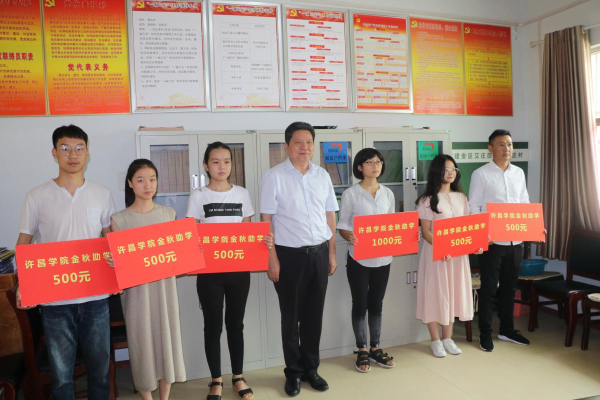 8月28日上午,bet36体育在线助力袁庄村脱贫攻坚“金秋助学”捐助活动在建安区艾庄回族乡袁庄村举行,校工会主席高金星,党委组织部、工会、艾庄乡党委政府等部门负责人及袁庄村“两委”干部、袁庄村2018年考入大学学生和家长参加捐助活动,捐助活动由bet36体育在线省派驻袁庄村第一书记陈浩勇主持。