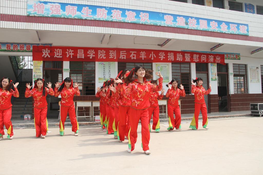 捐赠仪式后,罗书记一行和后石羊村小学的老师和同学一同观看了慰问演出。(摄影:宁智沛)