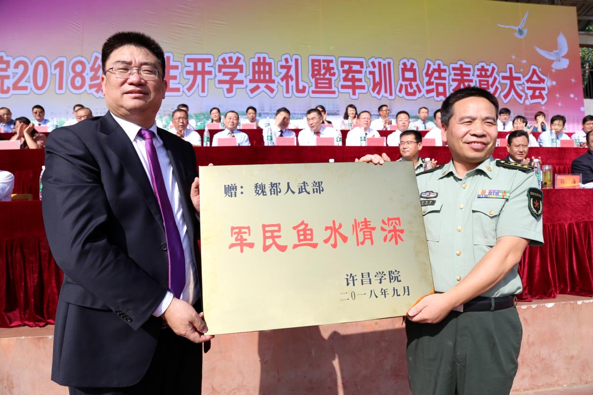 仪式上,闫纪建书记代表bet36体育在线向魏都区武装部赠送了“军民鱼水情深”的纪念牌。