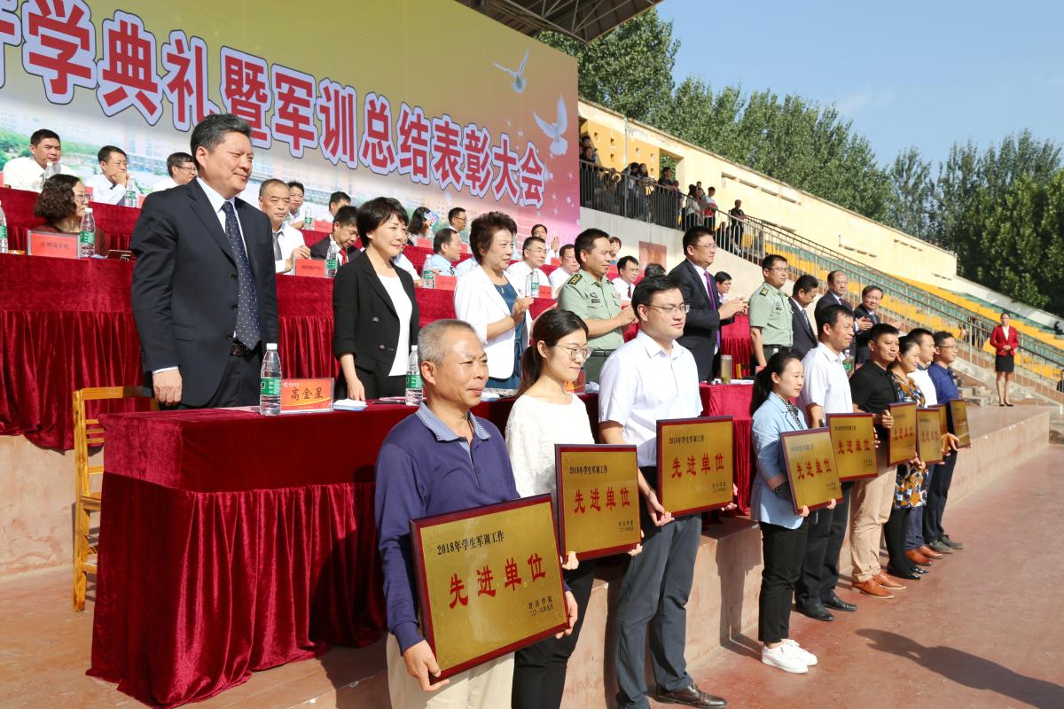 9月21日上午,bet36体育在线在学校羽飞田径场举行2018级新生开学典礼暨军训总结表彰大会。校党委书记闫纪建、校党委副书记孙海、纪委书记罗凤英、副院长崔斌、黄怡俐、郭涛,工会主席高金星出席大会。许昌军分区战备建设处处长陈福星、魏都区武装部政委牛听甫也出席活动并在主席台就坐。学校机关各部门和二级学院负责人、各团总支负责人、辅导员(班主任)和全体2018级新生共同参加会操活动和开学典礼。仪式由党政办公室主任潘春彩主持。