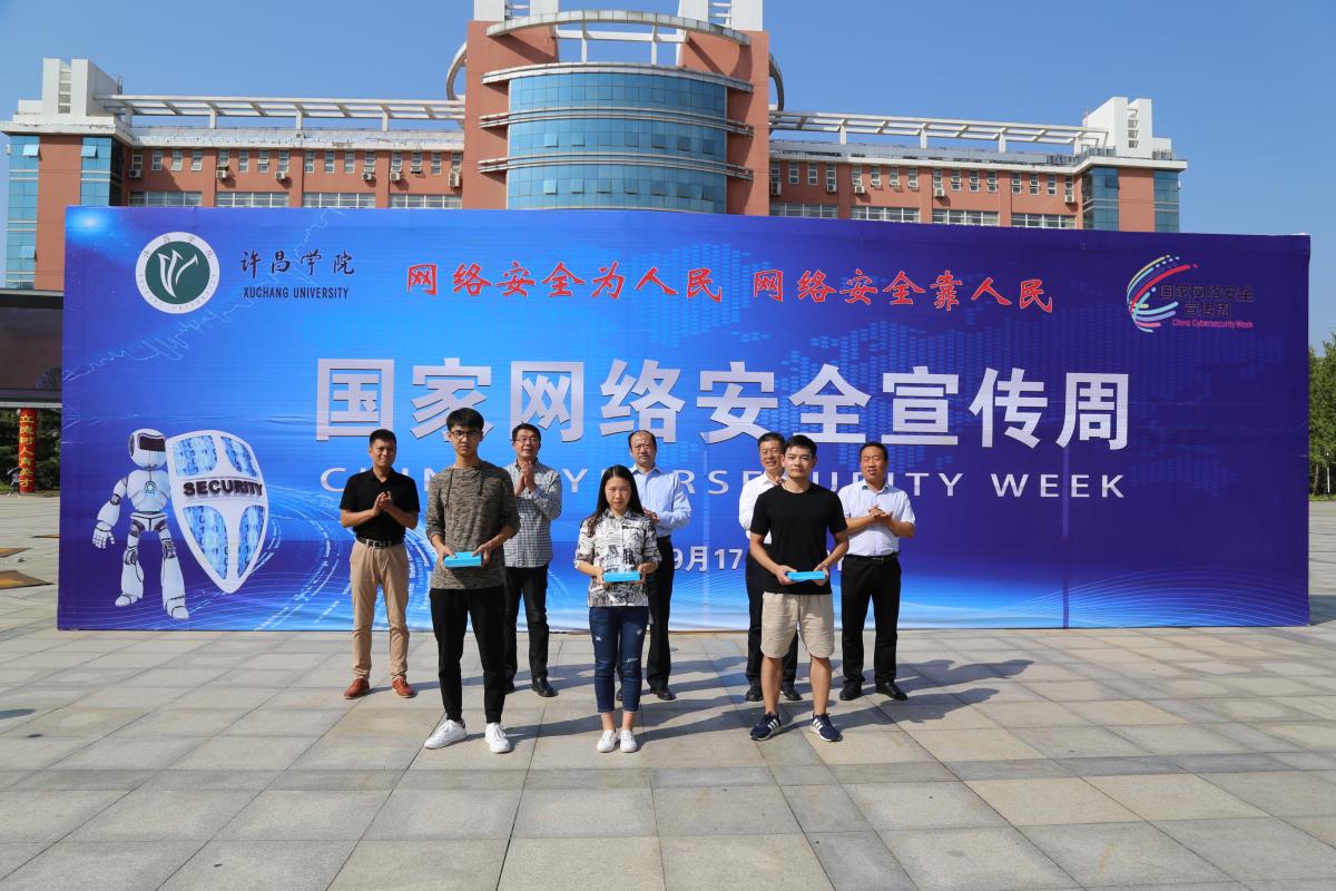 9月21日下午,bet36体育在线在弘毅广场举行网络安全知识竞赛颁奖仪式暨2018年网络安全宣传周活动闭幕仪式。副院长崔斌出席仪式并讲话,中国人民银行许昌市支行,bet36体育在线党委宣传部、学工部(处)、校团委、保卫部(处)、信息化管理中心、信息工程学院等相关部门负责人和师生代表200余人参加了颁奖仪式。仪式由信息化管理中心主任冯战申主持。