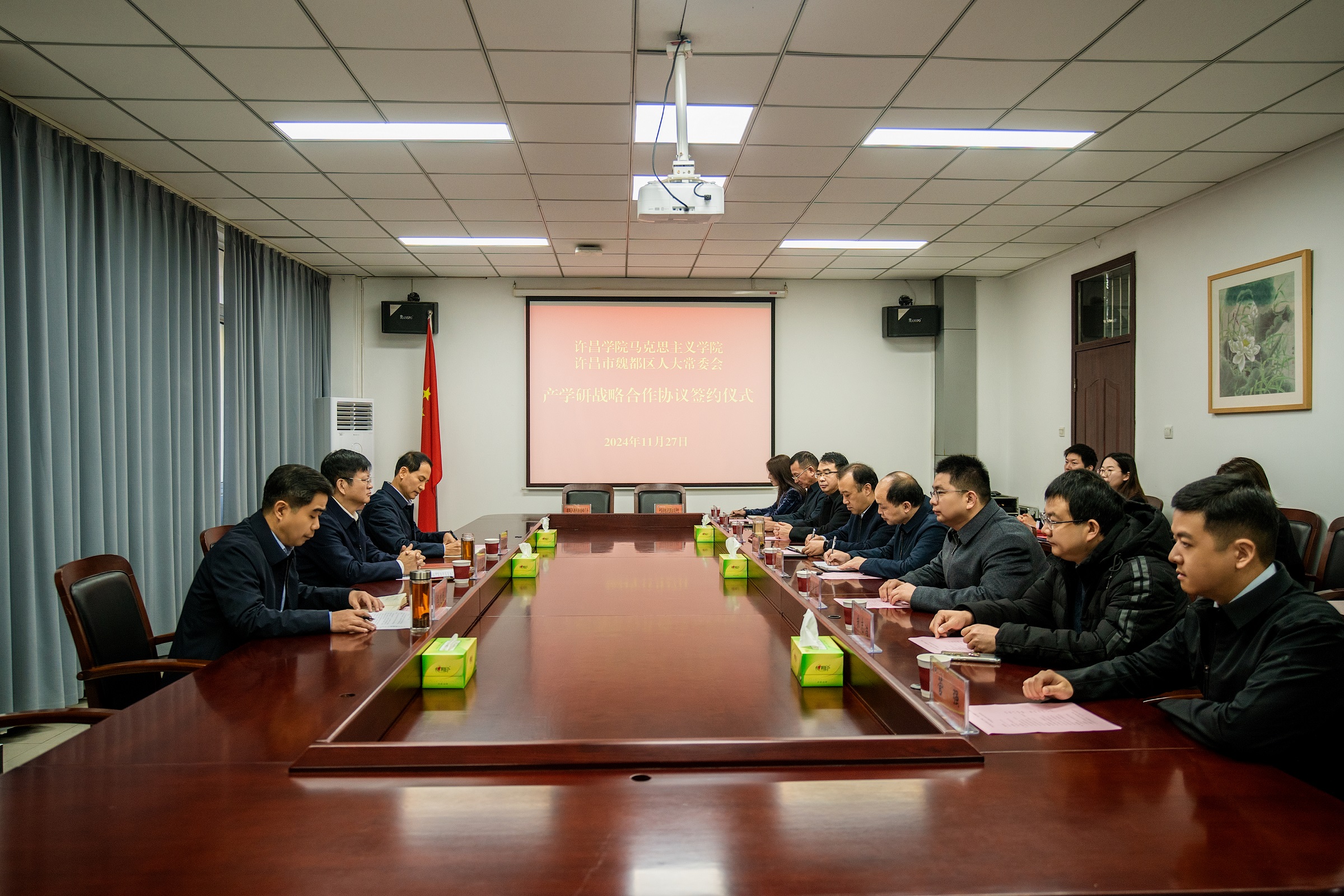 11月27日上午,bet36体育在线马克思主义学院与许昌市魏都区人大常委会产学研战略合作协议签约仪式在办公楼第四会议室举行。校党委副书记、工会主席梁予昉,魏都区人民代表大会常务委员会党组书记、主任申健民出席签约仪式,魏都区和bet36体育在线相关职能部门负责人参加本次仪式。签约仪式由校党委组织部部长冯晓民主持。