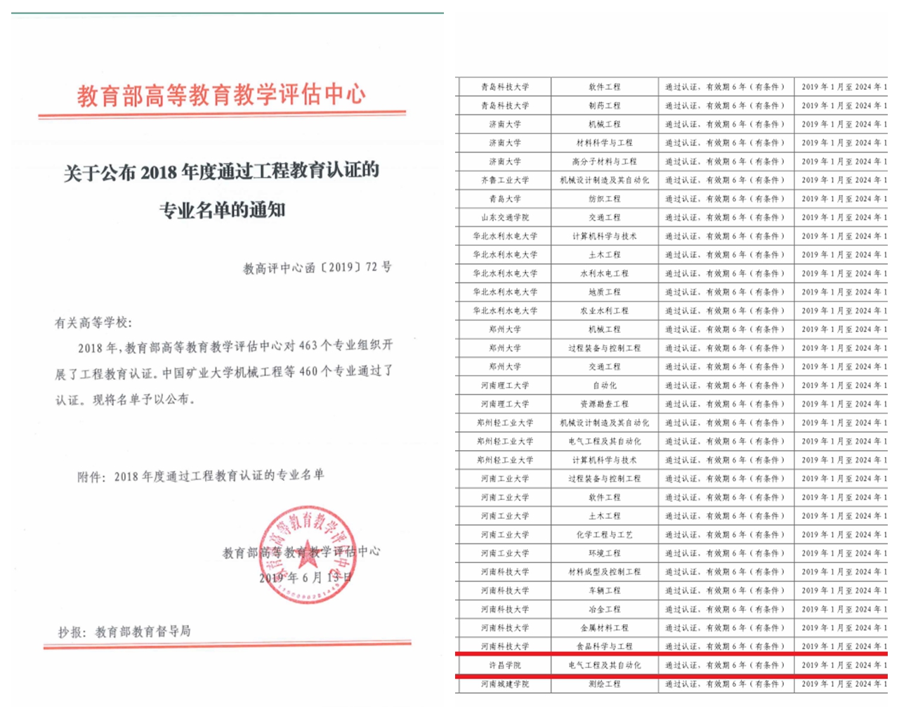 6月13日和16日,教育部高等教育教学评估中心、中国工程教育专业认证协会分别下发了《关于公布2018年度通过工程教育认证的专业名单》和《关于公布北京工业大学机械工程等460个专业认证结论的通知》,公布了2018年参加全国工程教育专业认证的部分专业认证结果,bet36体育在线电气工程及其自动化专业顺利通过工程教育专业认证,有效期为2019年1月至2024年12月。