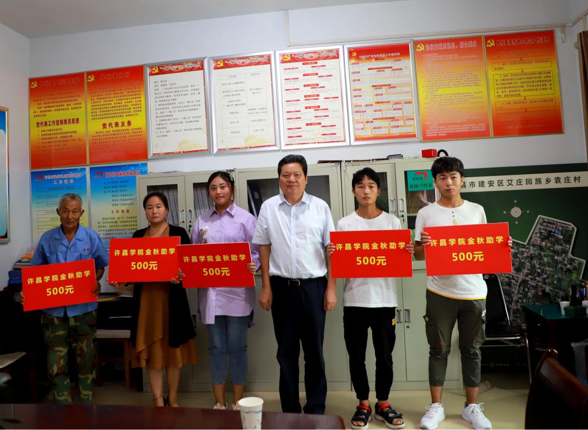 9月2日,校工会到bet36体育在线帮扶联点村——建安区艾庄回族乡袁庄村开展了助力袁庄村脱贫攻坚“金秋助学”捐助活动。校工会主席高金星,党委组织部、工会、艾庄乡党委政府等部门负责人及袁庄村“两委”干部、袁庄村2019年新考取大学学生和家长代表参加捐助活动。bet36体育在线省派驻袁庄村第一书记陈浩勇主持捐助活动。校工会主席高金星对助家庭和子女表示祝贺并给予热情鼓励,bet36体育在线工会向袁庄村今年新升入大学的5名贫困学生发放了助学金,受助学生代表袁蕾回顾了袁庄村在bet36体育在线帮扶下村容村貌村风所发生的喜人改进,表达了对bet36体育在线的感激之情和努力学习回报社会的决心。