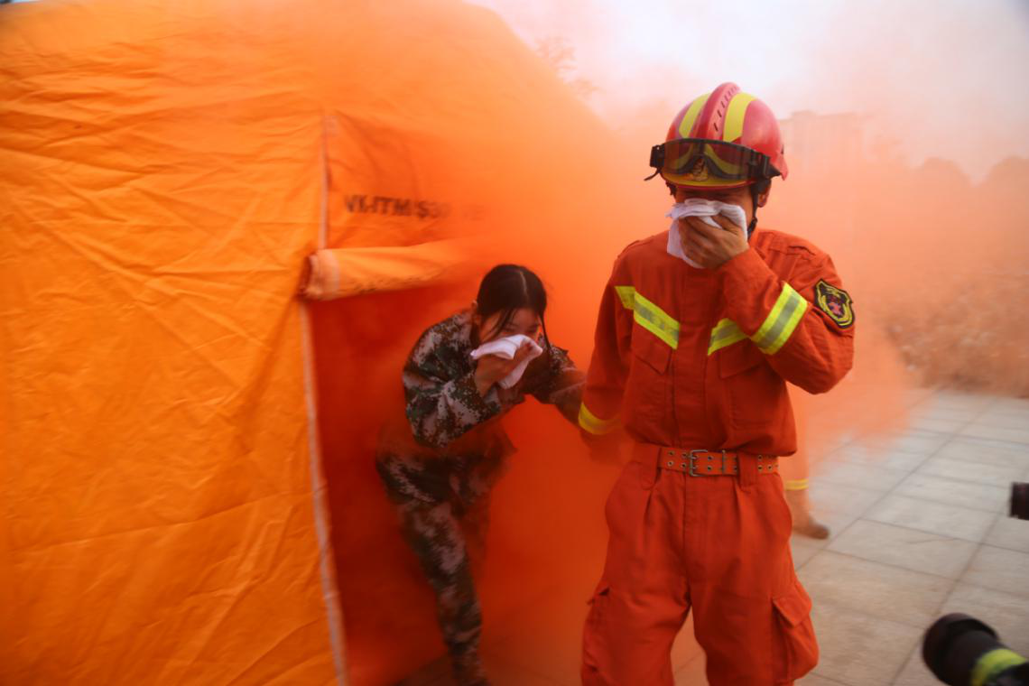 据悉,学校历来高度重视安全教育与平安校园建设工作,每年借助新生军训平台,通过消防、治安教育培训及火灾应急演练,使广大新生入校之初就树立安全稳定意识,增强安全防范及应急处置能力,为学校建设富有特色的高水平应用型大学提供坚实的安全保障。(摄影:杨哲)