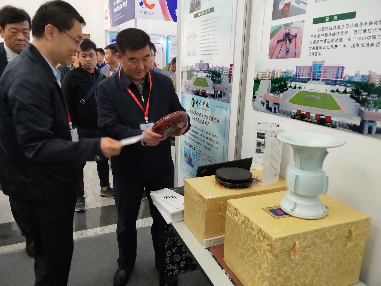 科技成果展示厅设在新乡市平原博物院,主要展示了我省高校、院所、企业的最新科技成果。bet36体育在线经过严格筛选,最终选取工业机器人协同创新中心的短传动链精密减速器、清洁化工协同创新中心的富氢水发生器、超硬材料及制品协同创新中心的超细预合金粉、以及新型钧瓷釉料产学研合作基地的钧瓷精品作为bet36体育在线代表参展。展会期间,河南省教育厅副厅长刁玉华专程来到bet36体育在线展位前,详细了解了bet36体育在线近年来取得的科技成果,并对bet36体育在线在科学技术研发和科技成果转化方面取得的成绩给予了充分肯定,鼓励bet36体育在线科技工作者多研发成果,积极为地方社会发展做出更大的贡献。