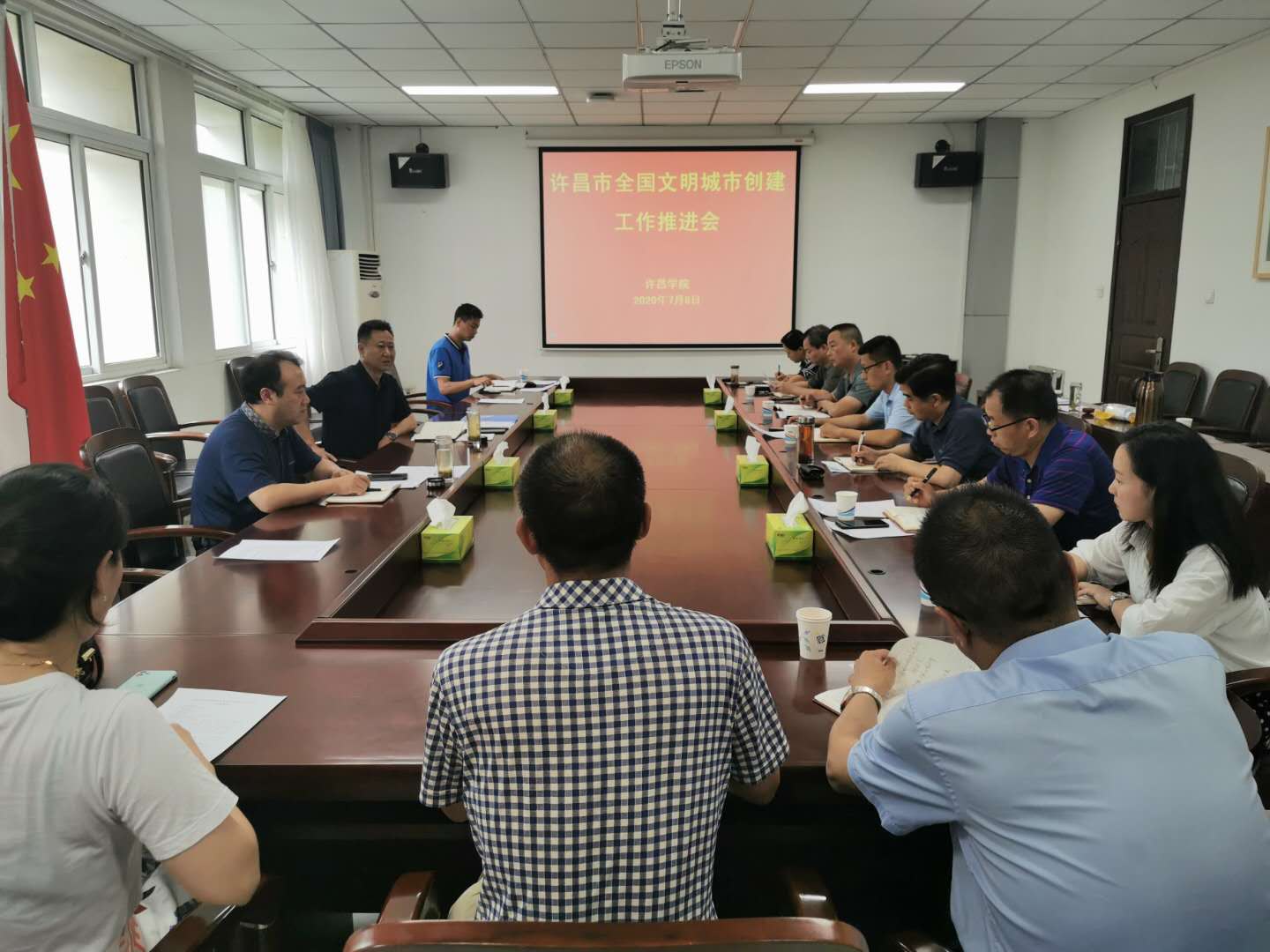 孙海副书记介绍了许昌市此次创建“全国文明城市”工作的总体部署,回顾了bet36体育在线在许昌市全国文明城市创建工作中作出的努力和取得的成绩,强调了学校作为地方院校在许昌市全国文明城市创建工作中应该发挥的作用。他指出,学校把许昌市2020年全国文明城市创建工作列入学校暑期重点工作,各责任单位和相关二级学院要对照创建指标和工作台账,高质量完成创建任务。孙书记要求:一是要形成共识,把创建工作宣传到位,形成“人人参与,人人有责,创建荣誉人人共享”的氛围;二是要压实责任,启动责任倒查机制;三是要在创建工作中发挥主观能动性,争创佳绩。