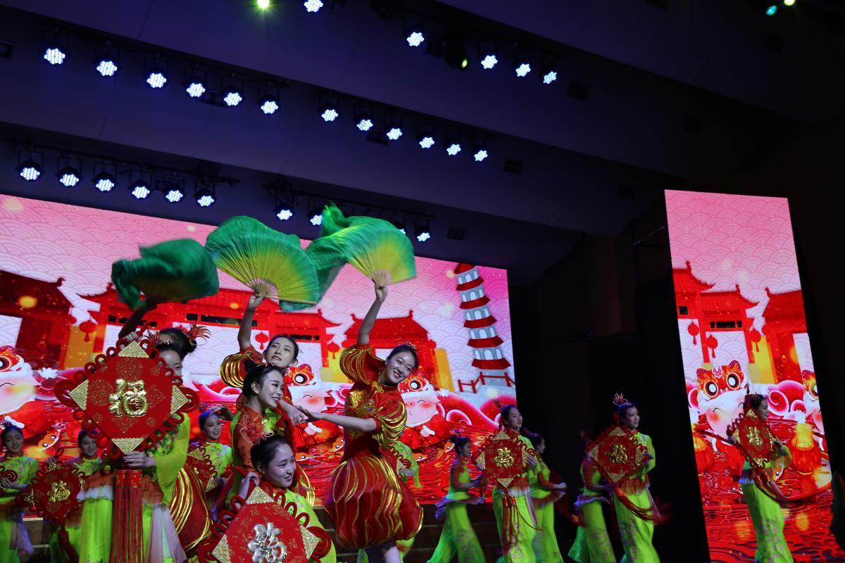 团拜会上,大家观看了精彩的文艺节目。演出以“奋进新时代”为主题,歌曲《春天的故事》、二胡独奏《红军哥哥回来了》、戏曲《打不尽豺狼绝不下战场》反映了中国共产党带领全国人民攻坚克难、开拓进取,谋复兴、求发展的时代主题,舞蹈《幸福中国一起走》、歌舞《看山看水看中国》《新的天地》展现了中华儿女“敢教日月换新天”的雄伟画卷,奏响了东方潮涌的交响诗篇,教师代表、校友代表和学生创作的音诗画《新时代的中国 新时代的我们》表达了bet36体育在线师生砥砺奋进、继往开来,在新时代、新征程展现新作为的雄心壮志。(摄影 宁智沛 钟伟超 )