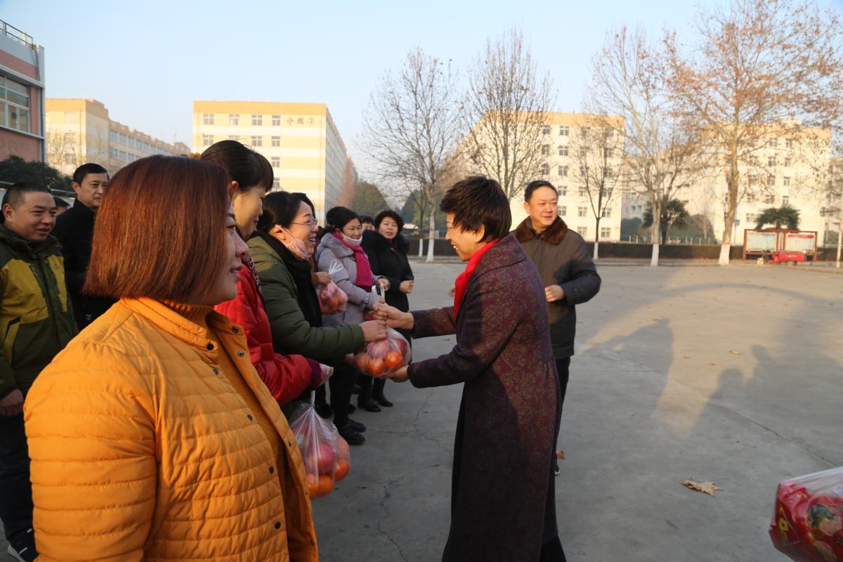 纪委书记罗凤英、副院长赵正风代表学校党委、行政向大家致以节日的问候,感谢他们为全校师生员工能够度过一个快乐祥和的春节所付出的辛勤劳动,叮嘱他们要注意安全,安排好春节期间的工作和生活,并送上新春祝福和慰问品。