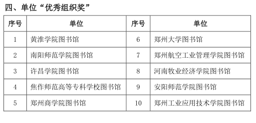 据悉,此次活动由河南省高等学校图书情报工作委员会在全省高校范围内组织开展,历时三个多月,共有80余所高校、10000余名师生参加,最终10所高校荣获“优秀组织奖”,90名师生获奖。
