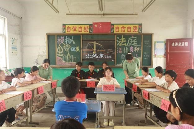 法学院“情暖童心,携法同行”暑期社会实践队秉持“知法于心,普法于行”的团队理念,连续九年深入乡村一线开展普法支教活动,投身基层法治实践。在鄢陵县陶城镇十室小学,团队结合专业知识,精心策划普法支教课堂,创新推出模拟法庭、法治辩论赛、法治版狼人杀、法治飞行棋等趣味普法活动,让乡村青少年在零距离、沉浸式体验中感受法律威严,学习法律知识,提升法治意识。此外,团队走进田间地头,推出原创普法相声《当普法遇上“豫”言》,用乡音相声阐释法理,并结合普法宣传、法律咨询、法律援助等活动,有效提升了广大群众的法治思维和法律素养,为法治乡村和法治中国建设贡献青春力量。