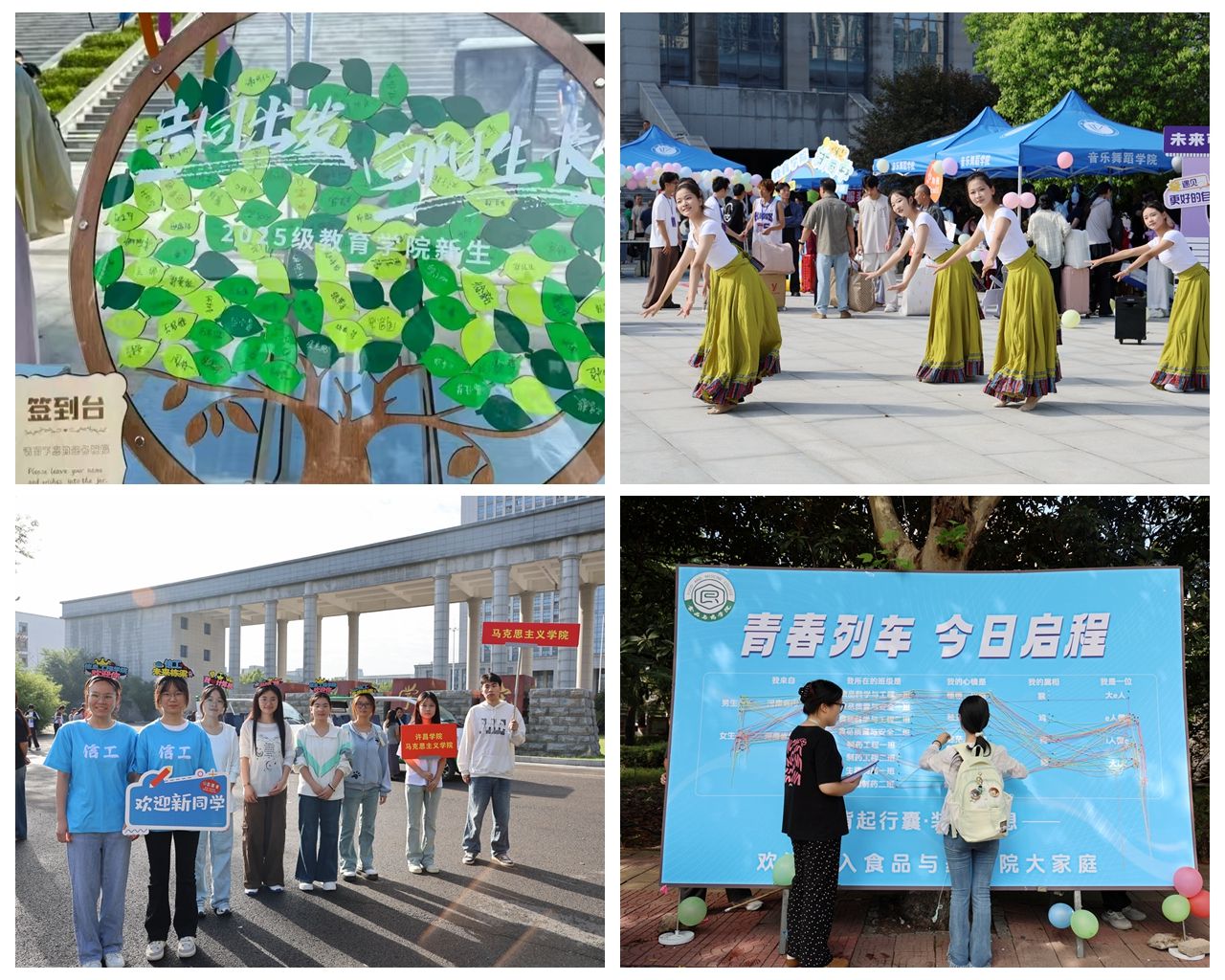 音乐与舞蹈学院带来现场舞蹈表演、合唱等节目,并发放牛奶与面包,用艺术与关怀抚慰风尘仆仆的新生。教育学院邀请每位新生将姓名书写于木制叶片上,投入学院专属的“教育之树”模型,片片木叶汇聚成荫,向阳生长。马克思主义学院为新生送上定制马克杯、书签和校徽贴纸,实用之余更显学院特色与精神传承。