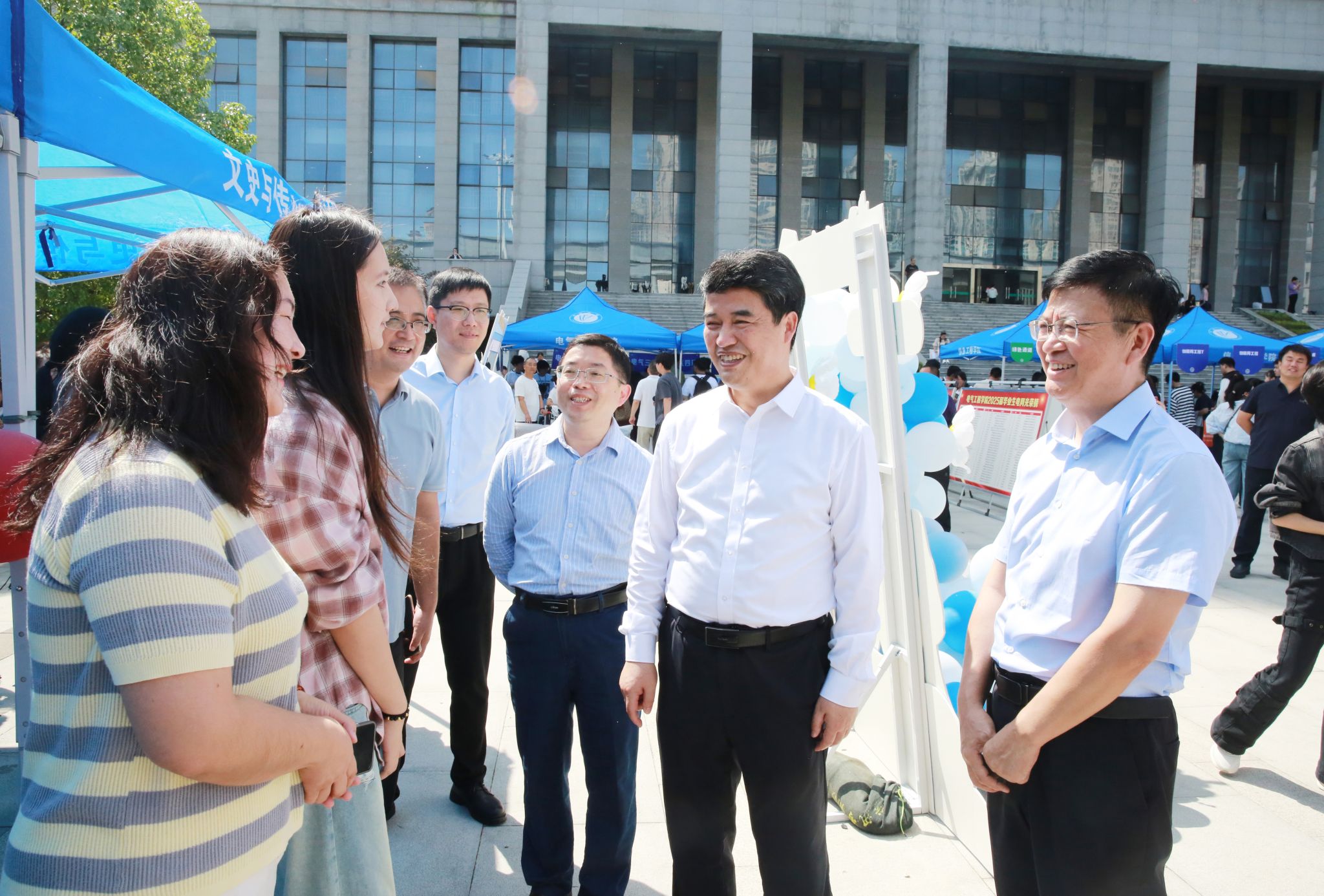 9月9日,新生报到第一天,校党委书记刘荣增,校长郑直,党委副书记、工会主席梁予昉,纪委书记、监察专员申占伟,副校长冯晓民在相关部门负责人陪同下,先后来到八一路和兴华路校区的迎新现场,了解报到情况,看望慰问迎新工作人员和志愿者,指导迎新工作。