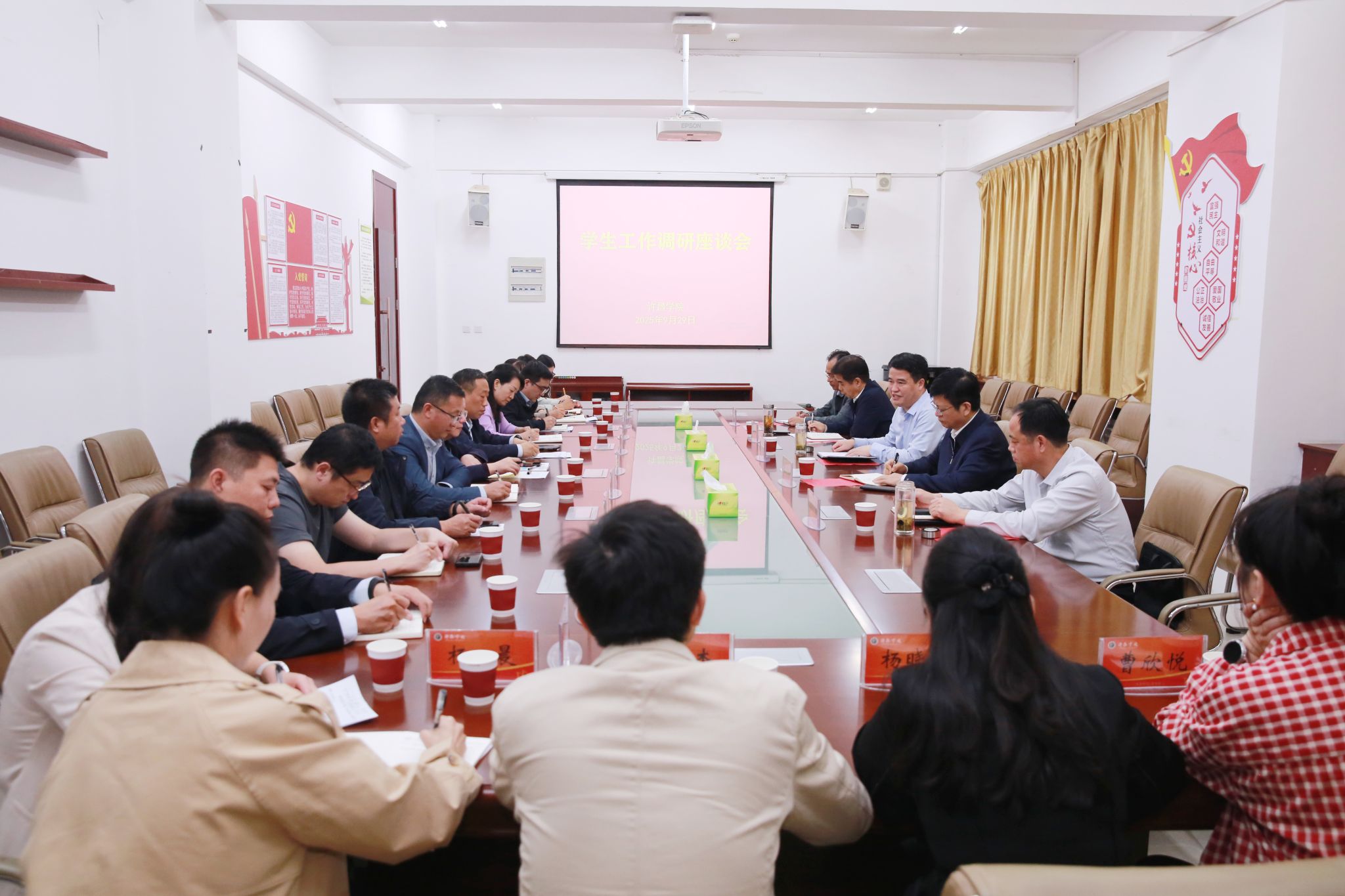 在随后召开的学生工作调研座谈会上,刘荣增对学校近年来学生工作取得的成绩给予充分肯定,并代表学校向广大学工队伍在各自岗位上的辛勤工作和无私奉献表示衷心感谢。他指出,学工队伍是维护学校安全稳定和促进学校发展的重要力量,校党委将一如既往地高度重视学工队伍特别是辅导员队伍建设,认真贯彻落实上级有关精神,进一步拓展辅导员职业化、专业化发展空间,不断提升学工队伍建设水平。