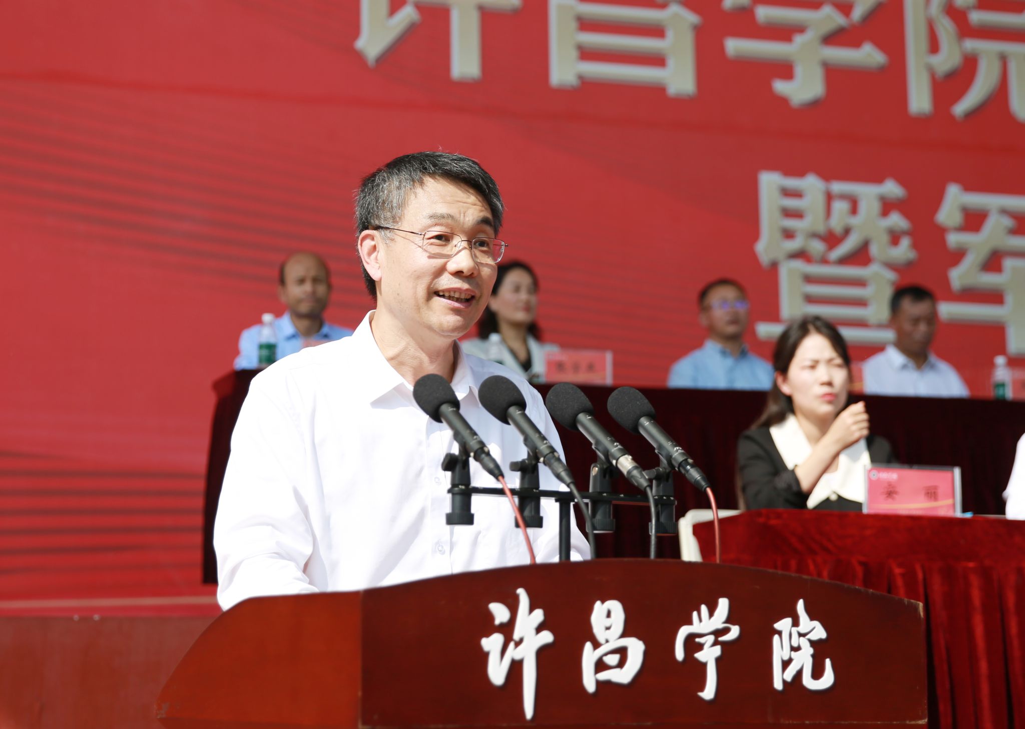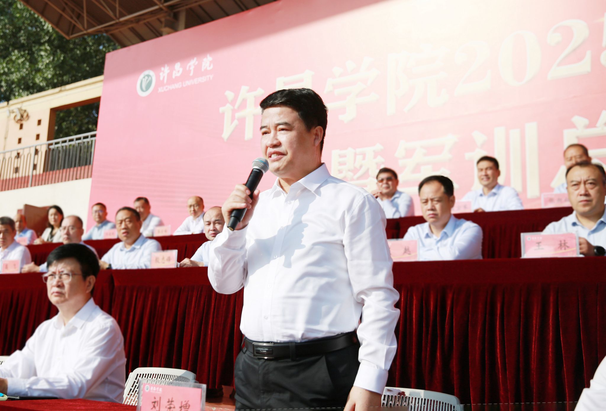郑直在大会上讲话,并以“探索大学无限可能 绽放青春多彩人生”为题为2025级新生讲授新学期“开学第一课”。他代表学校向2025级新同学表示热烈的欢迎,向圆满完成军训任务的全体同学表示热烈的祝贺。